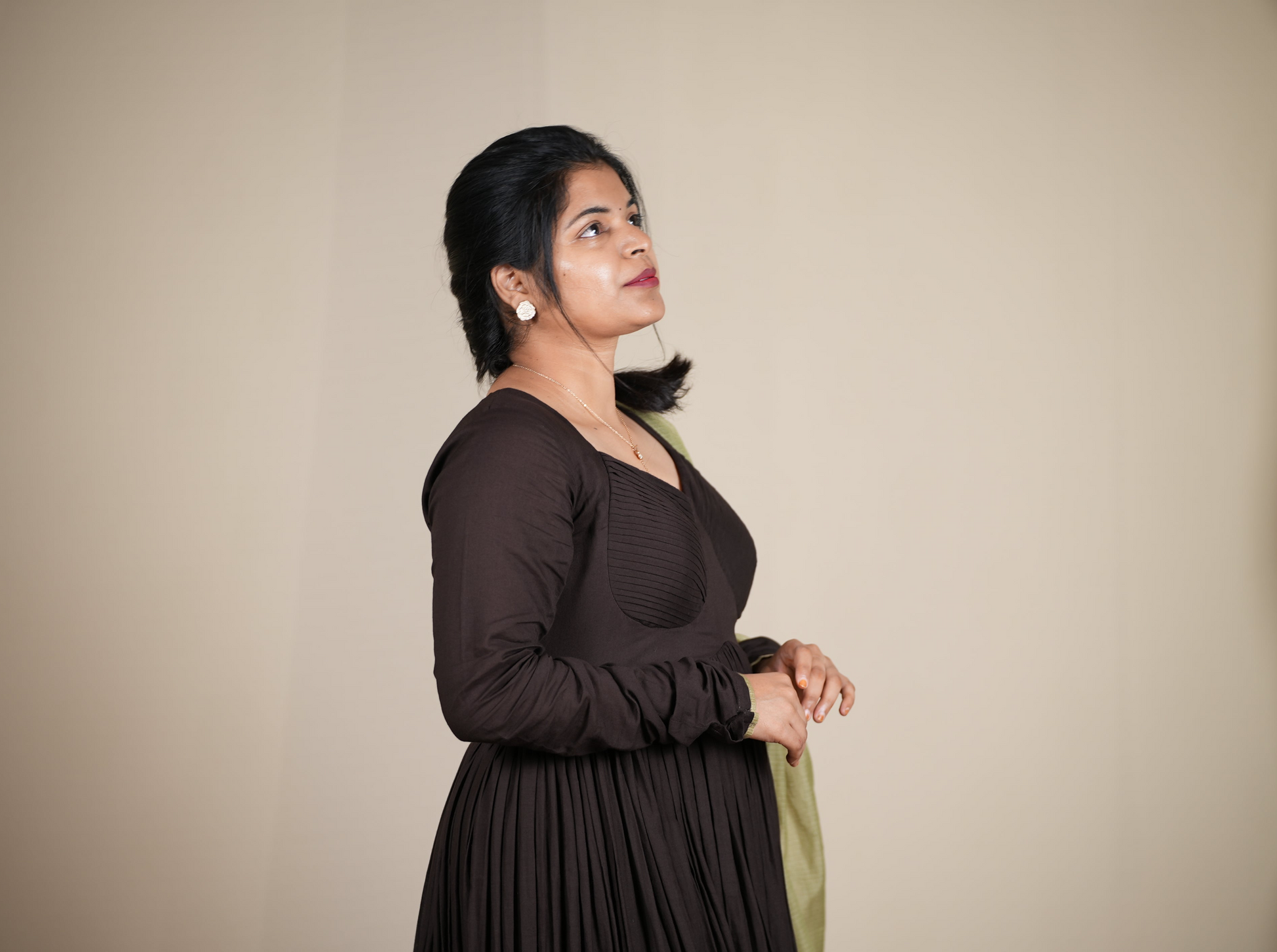 • Color: Deep chocolate brown with olive green dupatta
