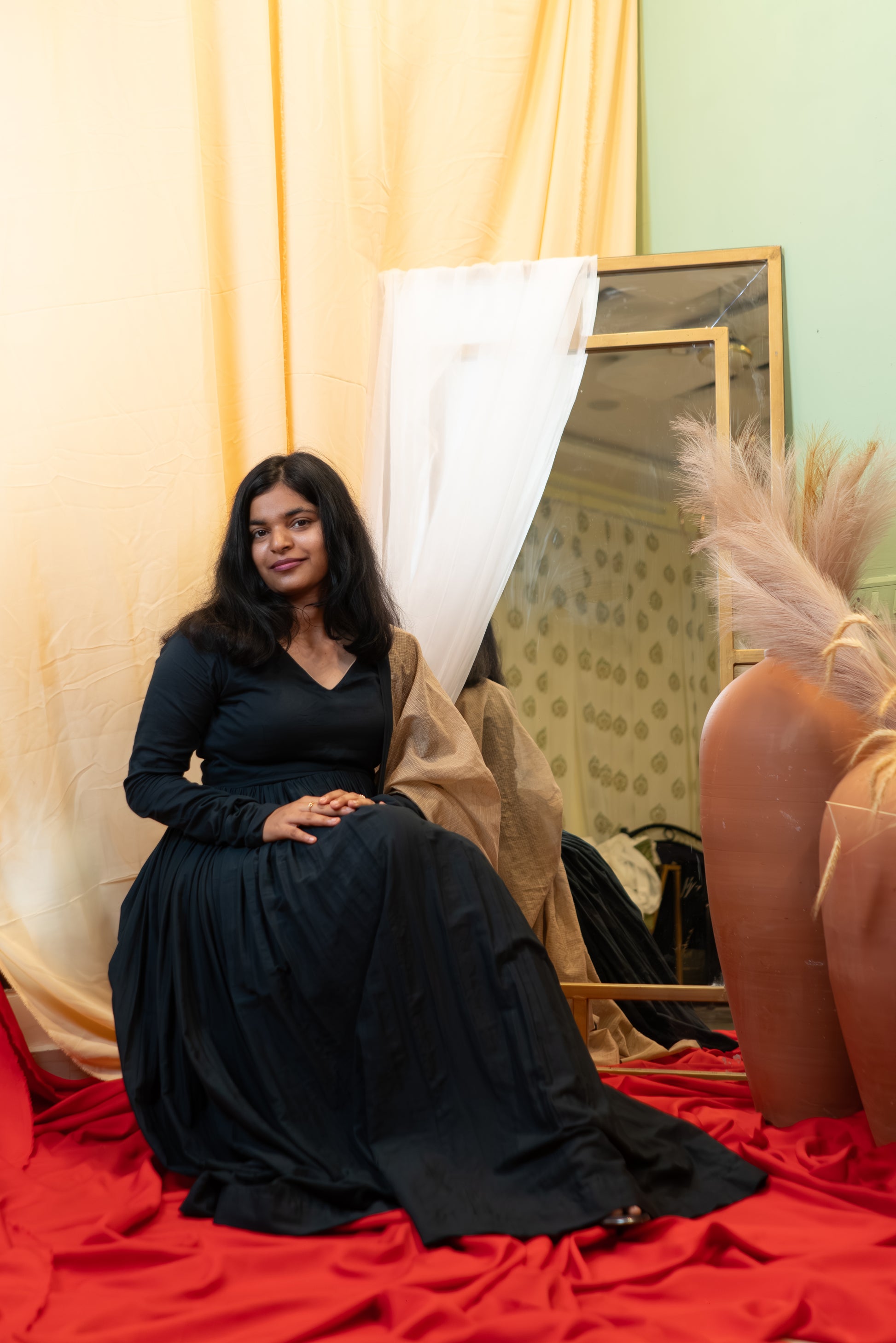 - Style: Flowing, pleated Anarkali paired with a soft Kota dupatta
